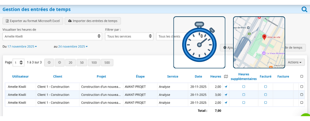 Une solution complète pour la création des feuilles de temps, ainsi que la gestion et le suivi du temps de travail des employés.