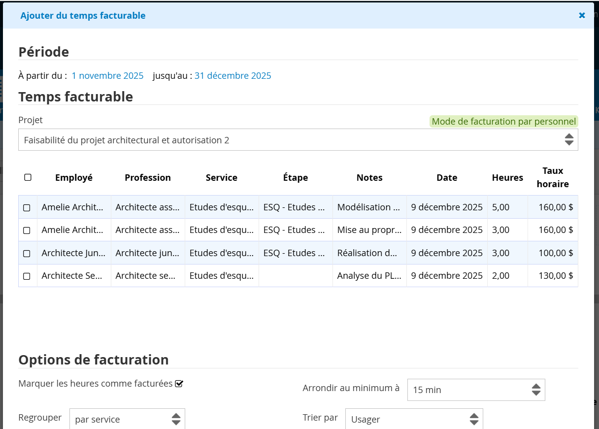 ✔️ Importez vos heures de travail dans la facture